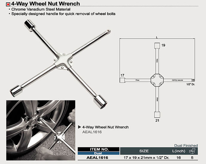 Cheie pentru roti in cruce 17, 19, 21mm, 1/2"