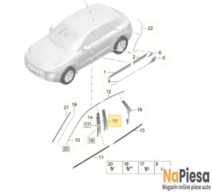 Ornament vertical spre fata usa dreapta spate Porsche Macan S OE