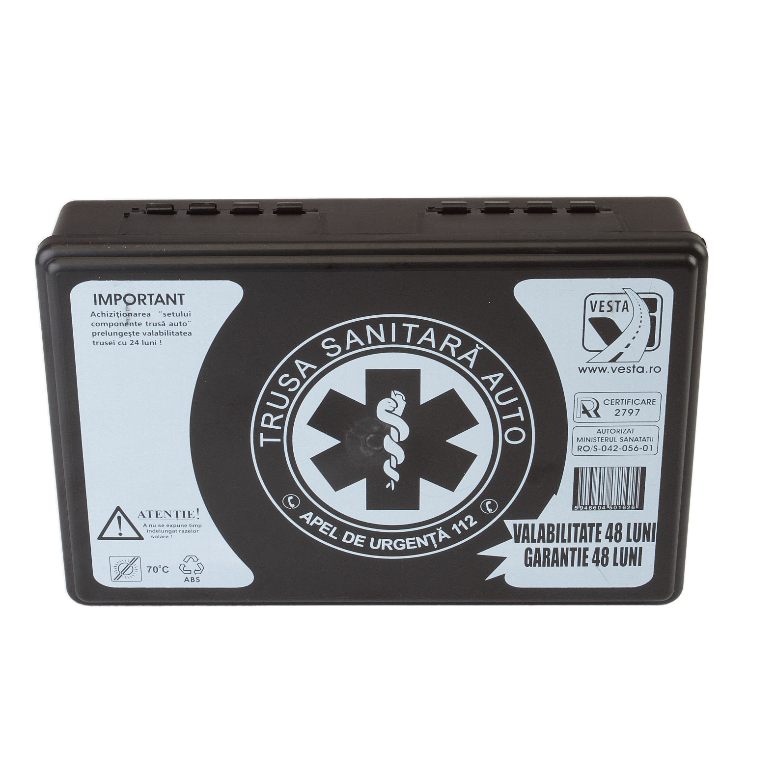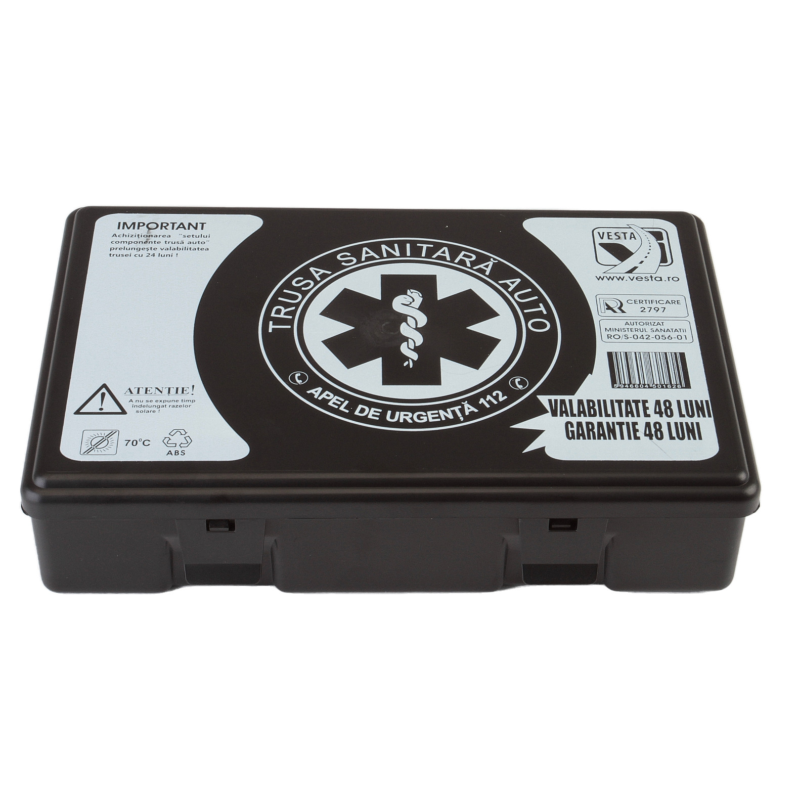 Destinata echiparii vehiculelor in scopul acordarii primului ajutor in caz de accident minor trusa sanitara auto de prim ajutor certificata RAR este conforma codului rutier (OUG.195/2002) si prevederilor legislative privind omologarea si inspectia tehnica periodica a vehiculelor, fiind obligatorie detinerea unei truse sanitare auto de prim ajutor certificata RAR la bordul vehiculelor.